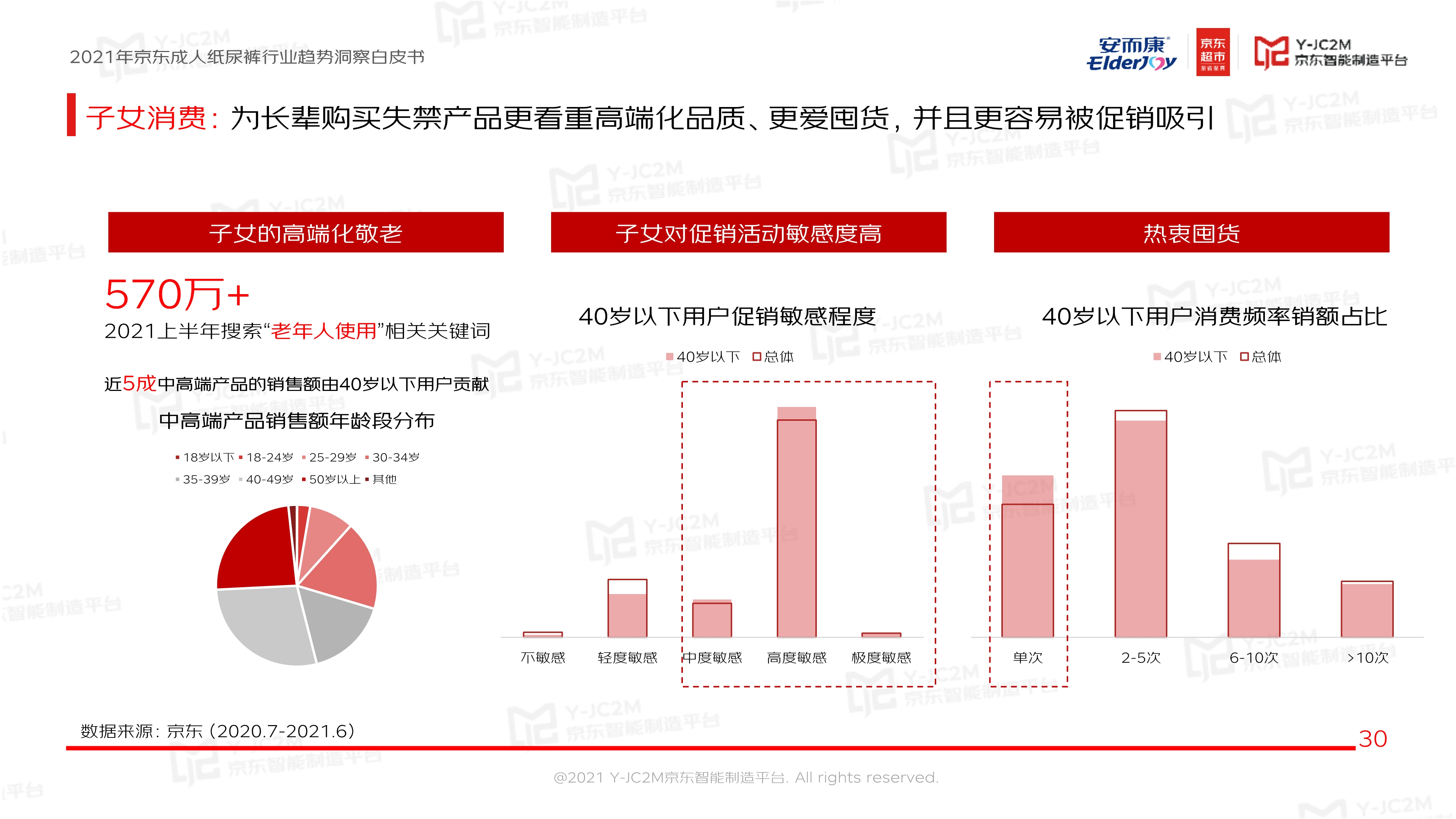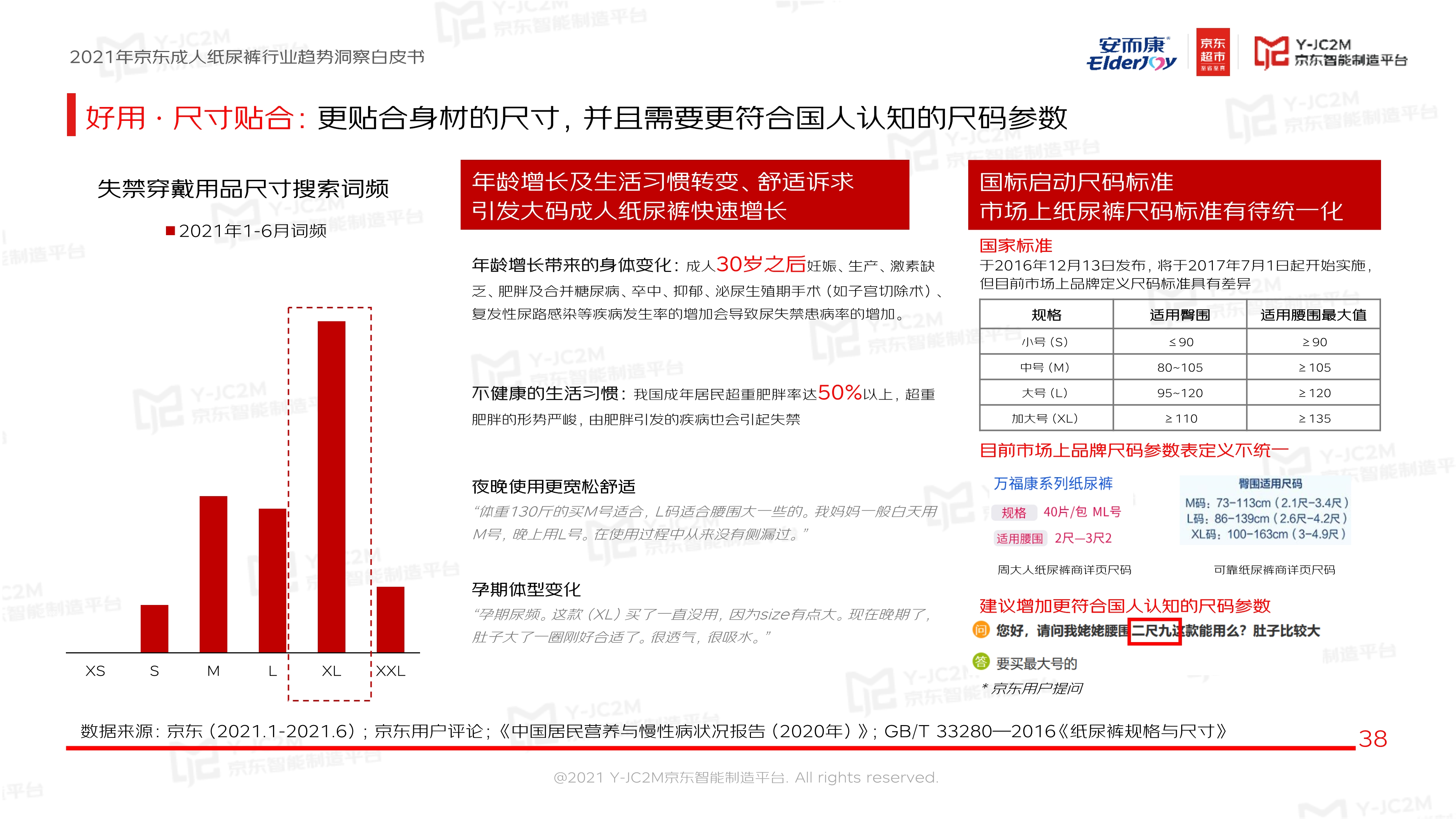 周期: 2023-01-07近日,88爱彩旗下成人纸尿裤品牌安而康联合京东智能制造平台共同发布《2021年京东成人纸尿裤行业趋势洞察白皮书》(下称《白皮书》),从行业概况、品牌格局、用户洞察、趋势展望四个维度,结合销量数据与消费者,深入剖析了随着我国步入老龄化社会以及消费观念不断升级,国内纸尿裤市场的全新变化与发展趋势。